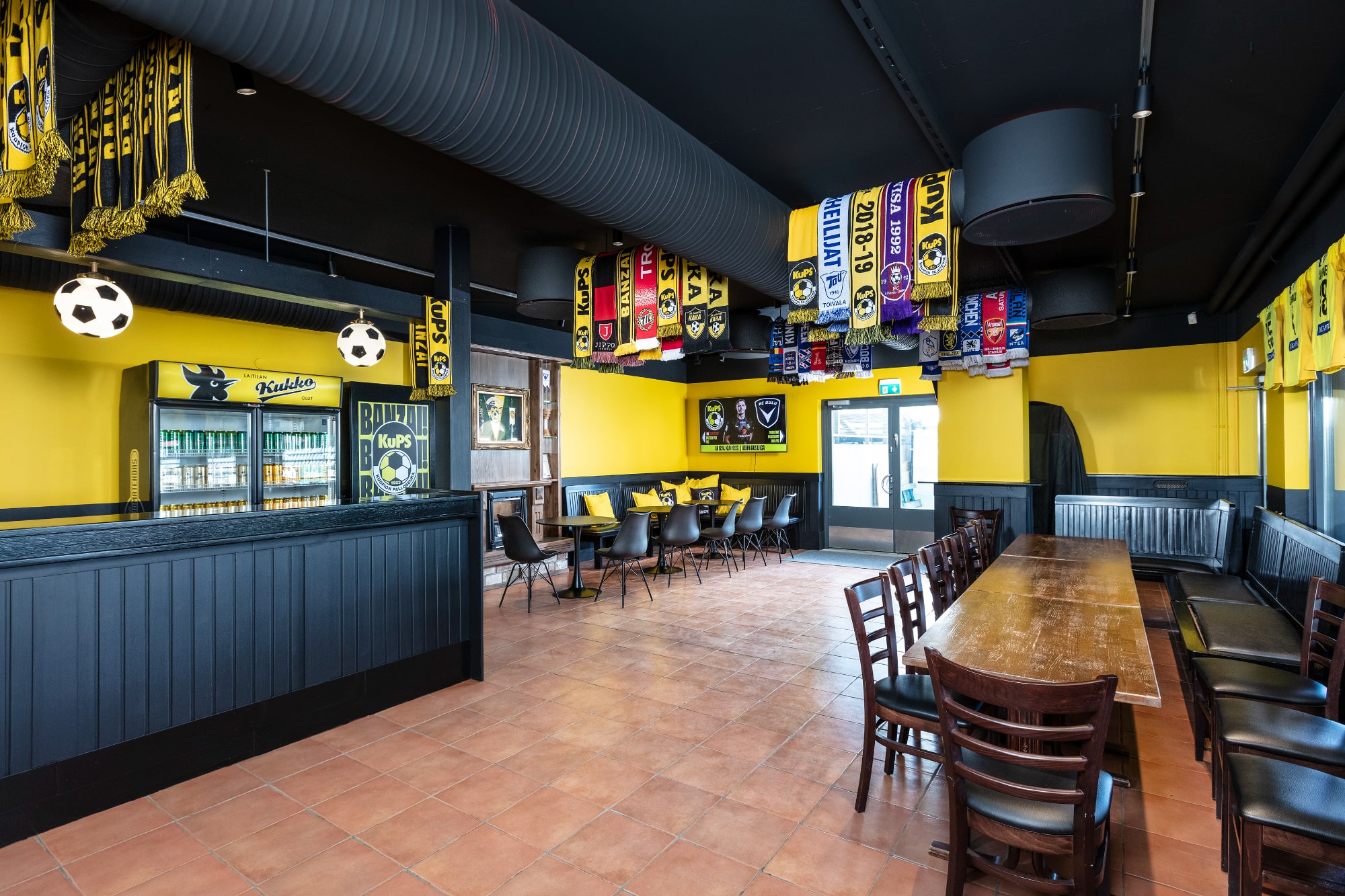 Tila sai selkeästi uuden identiteetin: värimaailma, valaistus ja toiminnallisuudet ovat nyt linjassa KuPSin brändin kanssa. Tunnelma on vahvasti urheiluhenkinen, mutta samalla lämmin ja helposti lähestyttävä. Fanit pääsivät testaamaan uutta pubia kauden avauskotiottelussa lauantaina 12.4.2025.